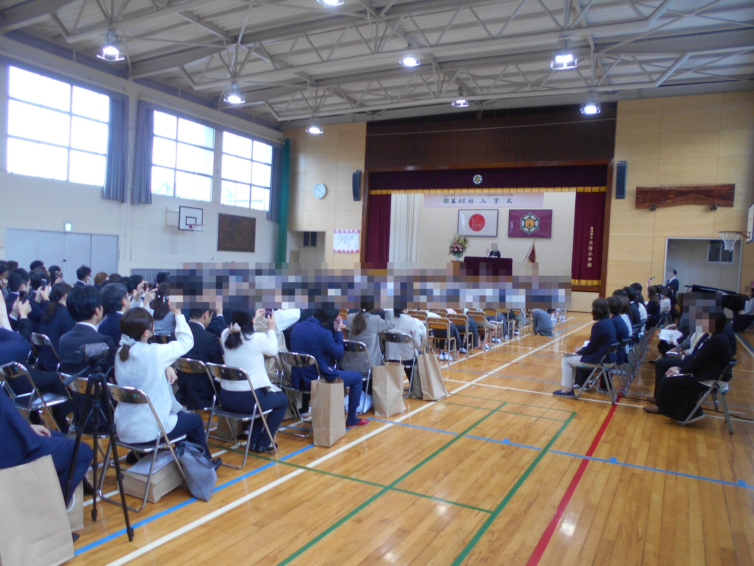 4月10日(金)に、第48回入学式がありました。前日夜は雨風が強く、当日の天候が心配されましたが、何とか雨も降らずに入学式を迎えることができました。元気に登校してきた新1年生の子どもたち。入学式でも、担任の先生による呼名では、「はい!」と元気に返事をすることができました。また、お祝いの言葉を聞いた後、「ありがとうございます。」と丁寧にお礼を言うことができました。入学式の後半には、6年生による歓迎の言葉がありました。やはり、6年生が出てくると1年生の子どもたちの姿勢が変わります。1年生にとって6年生のお兄さん、お姉さんは身近で親しみやすいだけでなく、憧れの存在なのでしょう。1年生の子どもたちは真剣な眼差しで見つめていました。1年生が入学したことで、大谷小学校も全学年がそろいました。これから、みんなで1年生を見守っていきたいと思います。